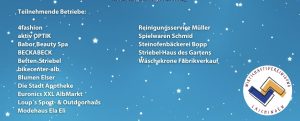 Vom 24.11. – 14.12.2025 in den teilnehmenden Geschäften einkaufen, Kontaktdaten auf die Rückseite des Kassenbeleges schreiben und in die Losbox einwerfen. Im Aktionszeitraum werden jede Woche DREI Gewinner ausgelost, die ihren Einkauf von uns bezahlt bekommen!